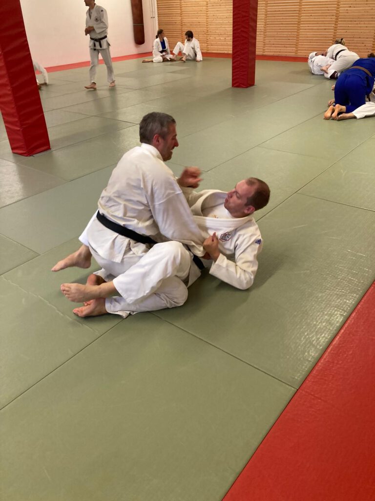 In schweißtreibenden zwei Stunden wurden realistische Selbstverteidigungstechniken gegen Angreifer aus der guard- und mount- Position trainiert.
