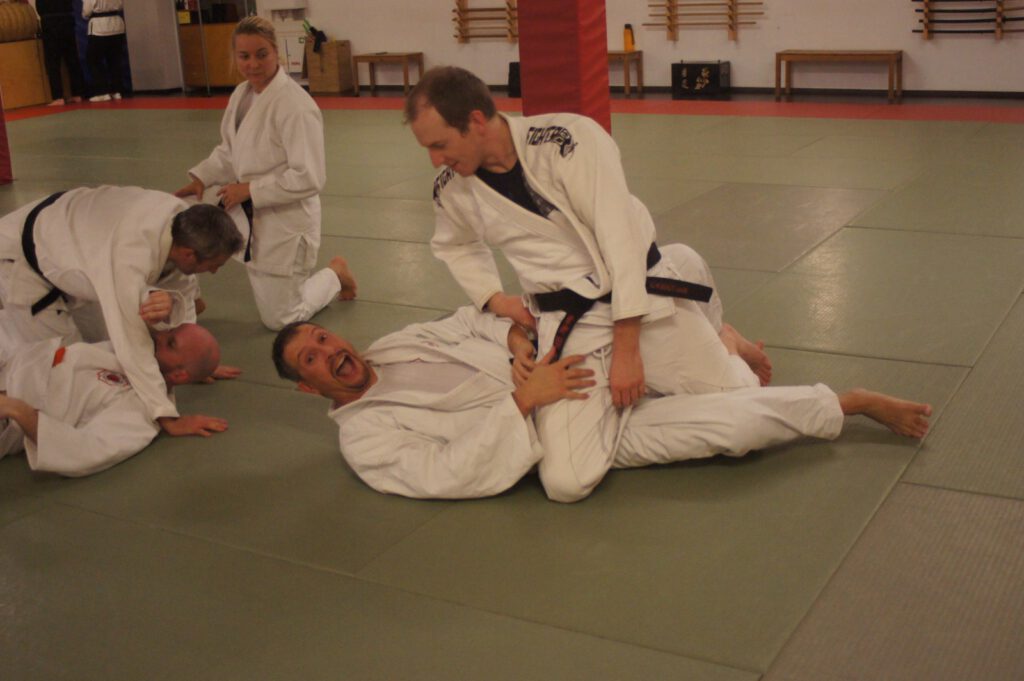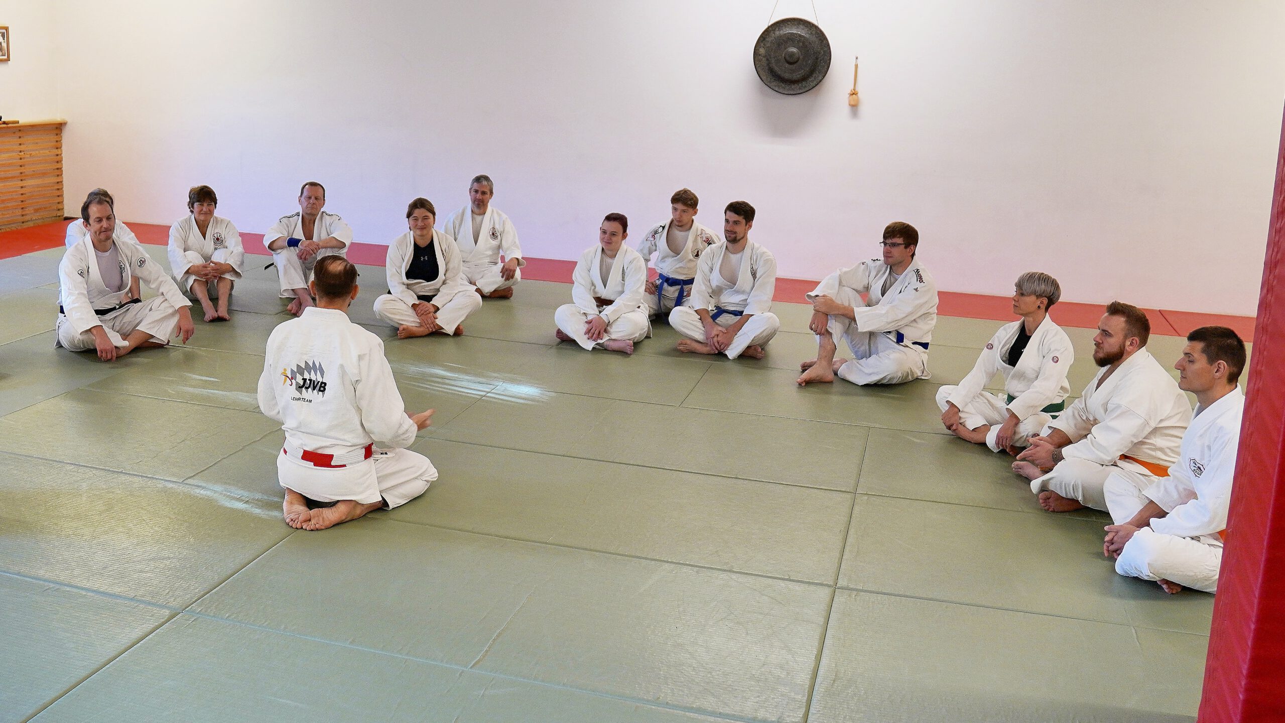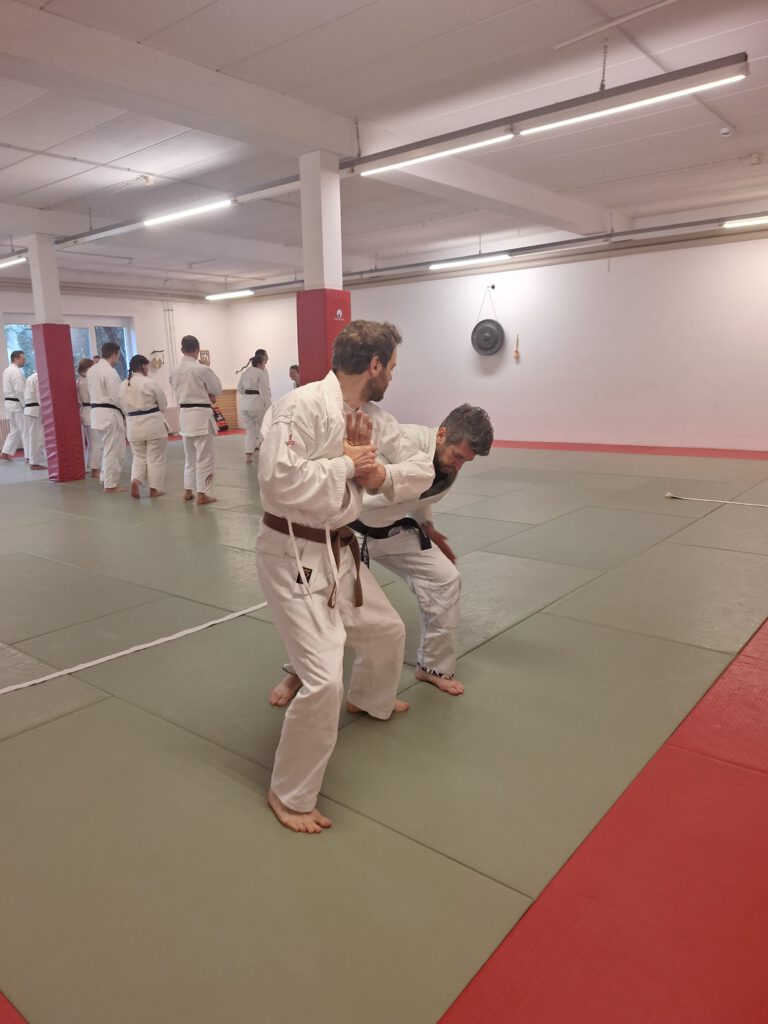 Zum Vereinslehrgang beim Budokan kam der frisch gebackene 6. Dan Holger Kahlert zurück an seine alte Wirkungsstätte. Fokus der 4 stündigen Trainingseinheit lag auf der Dynamik in verschiedenen Technikkombinationen, von Hebeln über Würfe bis zu Atemi. Realistisches Angriffsverhalten und kompromissloses Umsetzen der Techniken waren dabei 2 Kernelemente zur dynamischen Umsetzung.