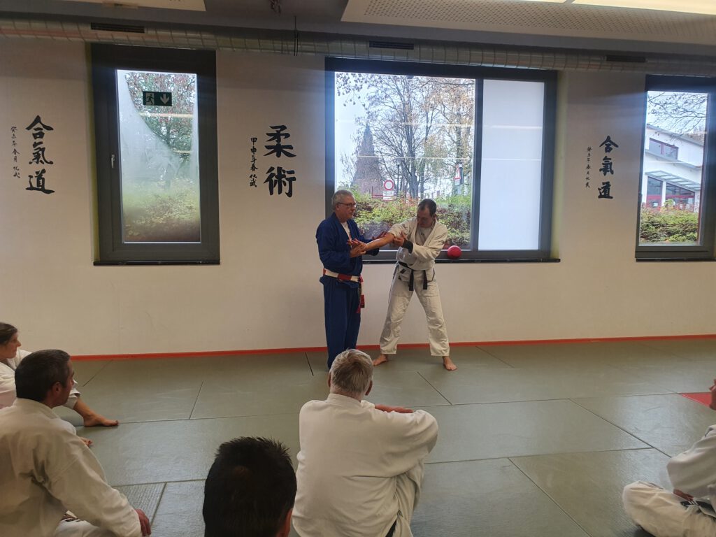 Den ersten Teil des Lehrgangs übernahm Roland Schachler mit dem Thema Nervendrucktechniken. Der Fokus lag bei der Integration von Nervendrucktechniken in diversen Selbstverteidigungssituationen mit unterschiedlichen Angriffen. Hierbei wurden Nervendrucktechniken an mehreren Körperregionen eintrainiert wie z. B.: am Kopf-, Hals- oder Oberkörperbereich sowie am Handrücken und Oberarm.