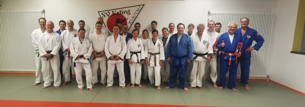Am 12.11.2022 fand beim SV Esting ein Landeslehrgang Technik statt. Die hochklassigen Referenten Roland Schachler (6. Dan Ju-Jutsu, vom ASV Grassau) und Christian Brabänder (3. Dan Ju-Jutsu, vom Budokan Regensburg) wie auch die thematische Vielseitigkeit des Lehrgangs lockten zahlreiche Ju-Jutsukas auf die gut besuchte Matte.